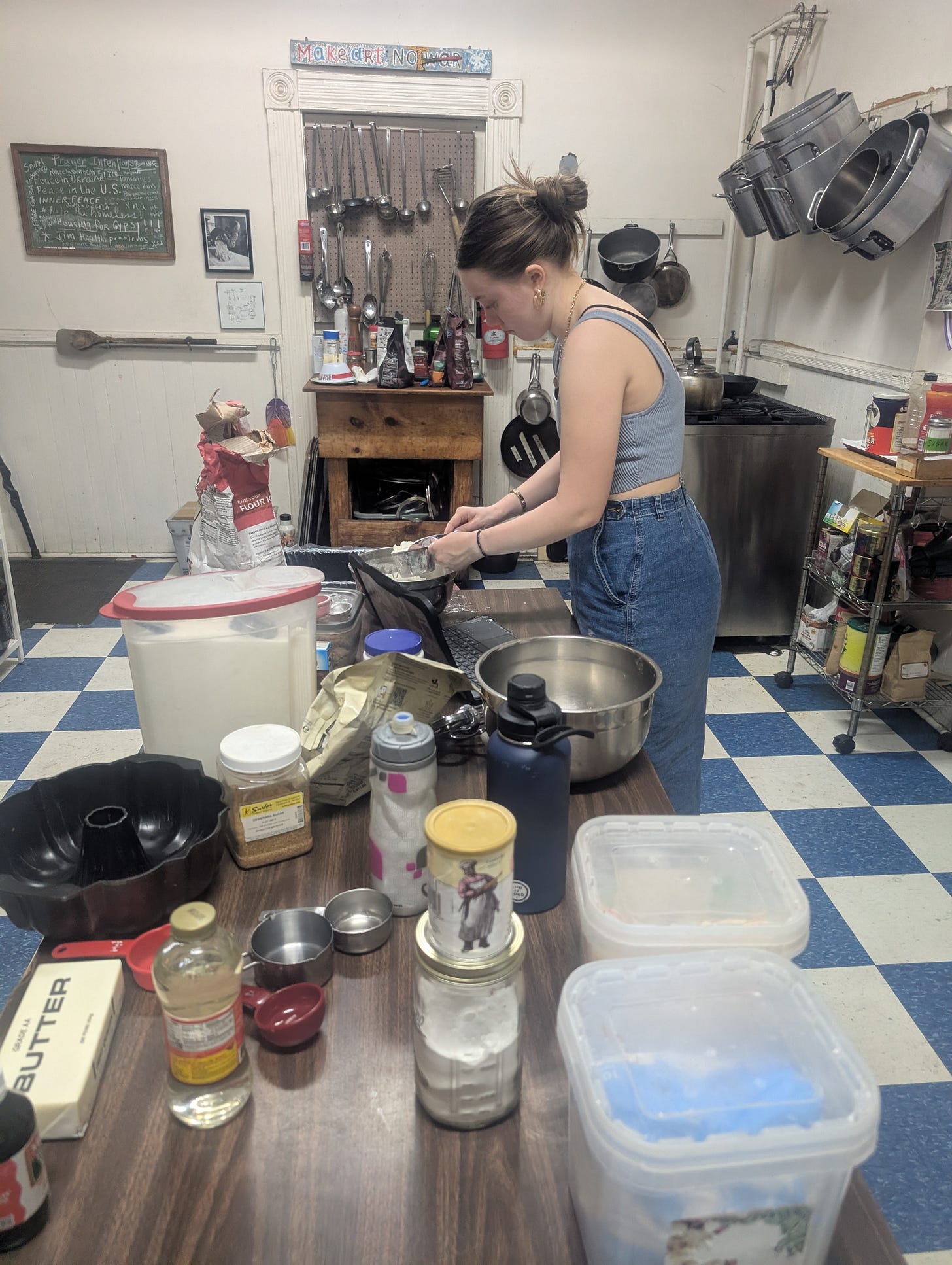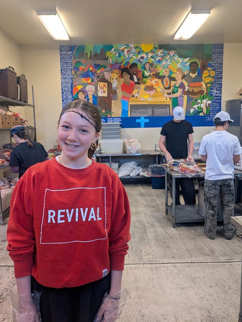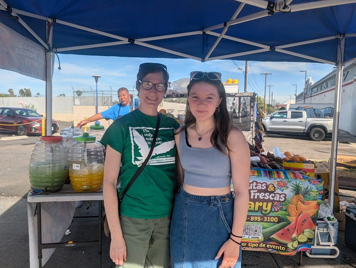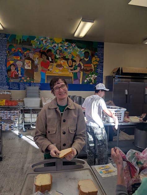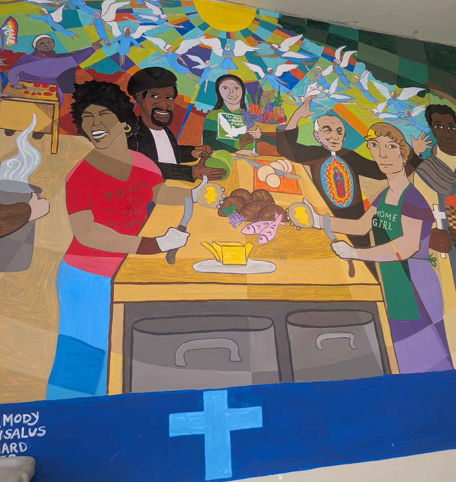 25 years ago Meridith and I met while serving breakfast and washing feet at a Catholic worker in Atlanta called the Open Door. We reveled in its liberation theology Bible studies, Pete Seeger sing-alongs and eclectic cast of characters. Sadly, the Open Door in Atlanta no longer exists. The old mansion was sold and town down, its neighborhood subsumed by gentrification. Thinking that version of Catholic Worker was gone, we were surprised and delighted when—in 2022— we found its sister ministry in Boyle Heights, near Skid Row, in LA.