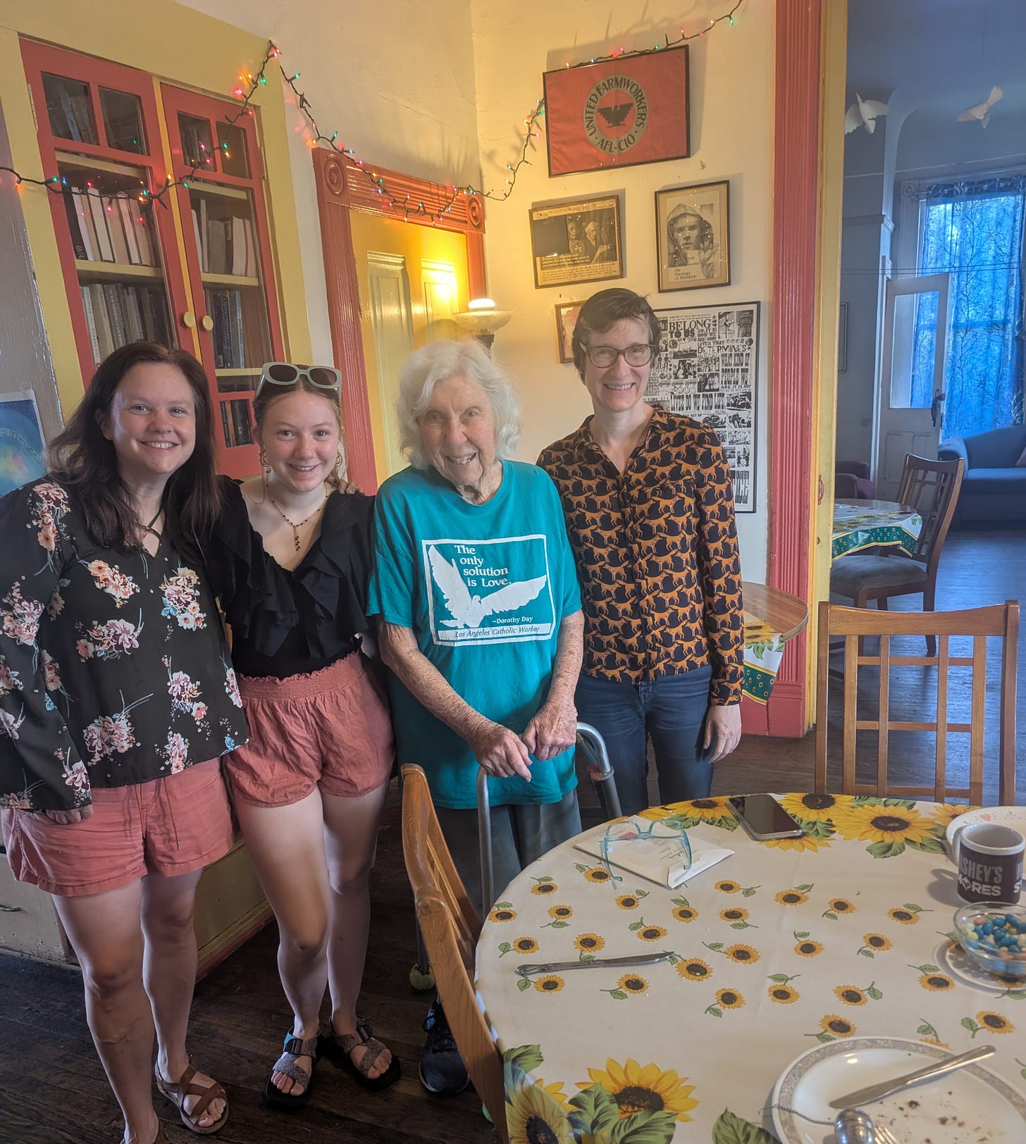 I love that Dorothy Day quote. Sounds like you all had a wonderful spirited time at the Catholic Worker in LA. What a trip to give joy to your feet. Love and Prayers always.